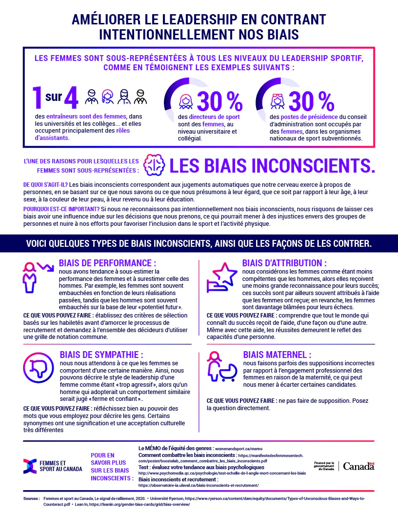 Si vous désirez en savoir plus à ce sujet, vous pourriez suivre notre module en ligne Le MÉMO de l’équité des genres. En plus de présenter des définitions à plusieurs concepts importants, on y retrouve un modèle pratique pour remplir vos engagements en matière d’équité des genres dans le sport… quel que soit le rôle que vous jouez!