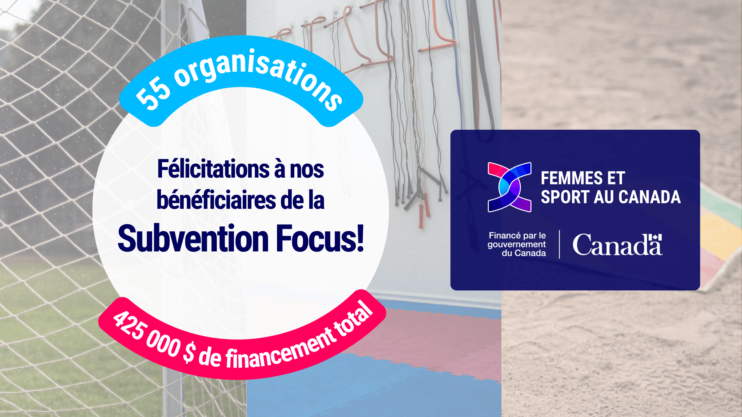 Femmes et sport au Canada est fier d'annoncer les 55 organisations bénéficiaires de la subvention Focus à travers le Canada. Ces organisations recevront un financement total de 425 000 dollars pour soutenir des initiatives visant à accroître les possibilités pour les filles d'accéder aux bienfaits du sport et de l'activité physique.